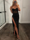 Sparkly High Slit Black Long Evening Prom Dresses, DB0324