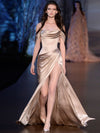Formal Taupe Satin Side Slit Long Evening Prom Dresses, Off Shoulder Prom Dress, DB0310 Formal Taupe Satin Side Slit Long Evening Prom Dresses, Off Shoulder Prom Dress, DB0310