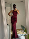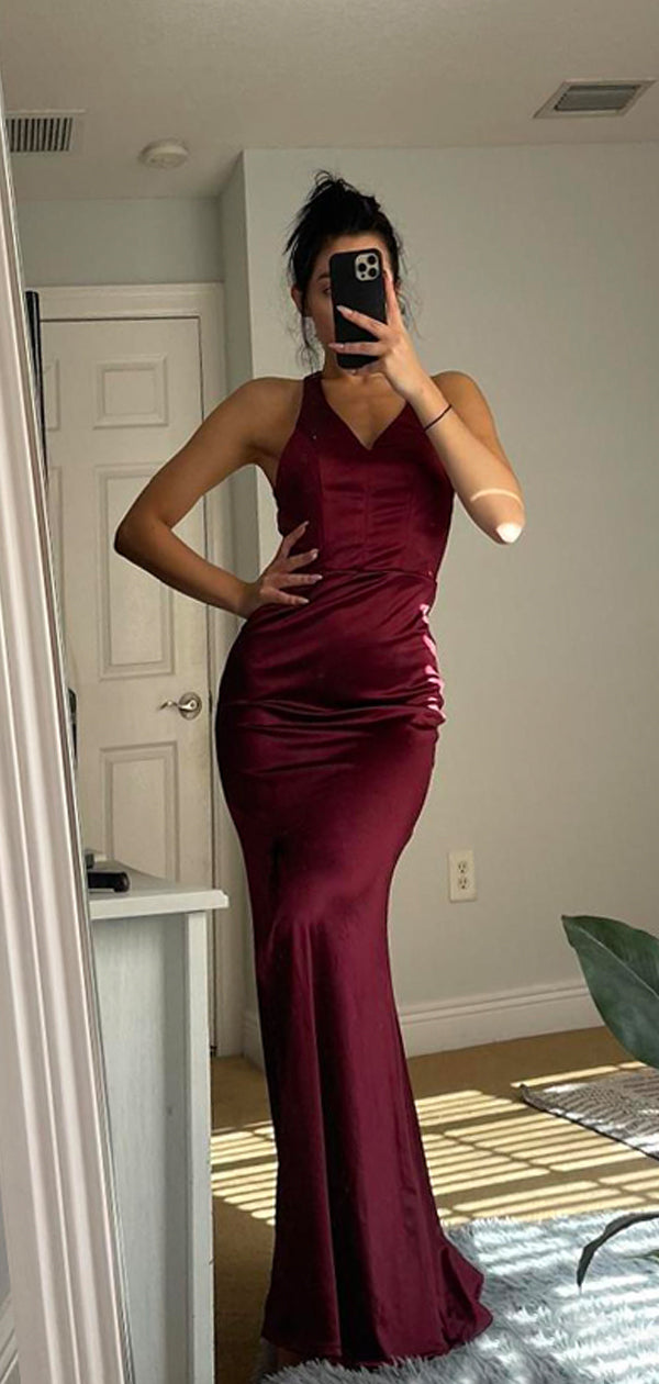 Simple V-neck Burgundy Satin Backless Long Evening Prom Dresses, DB0306 Simple V-neck Burgundy Satin Backless Long Evening Prom Dresses, DB0306